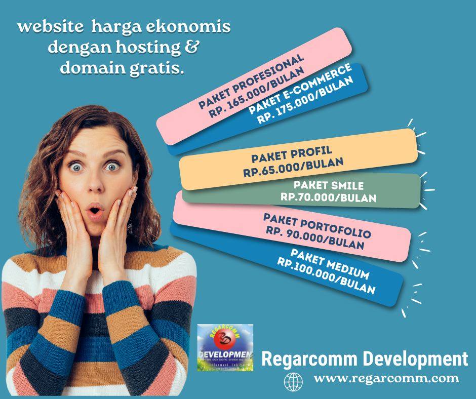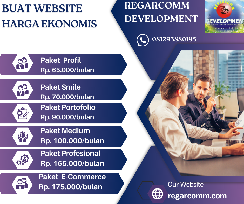 Regarcomm Development menawarkan pembuatan Website Profil, portofolio, komunitas,e-commerce dan lainnya dengan harga terjangkau dan dapatkan hosting dan domain gratis. Kontak WA : 081293880195