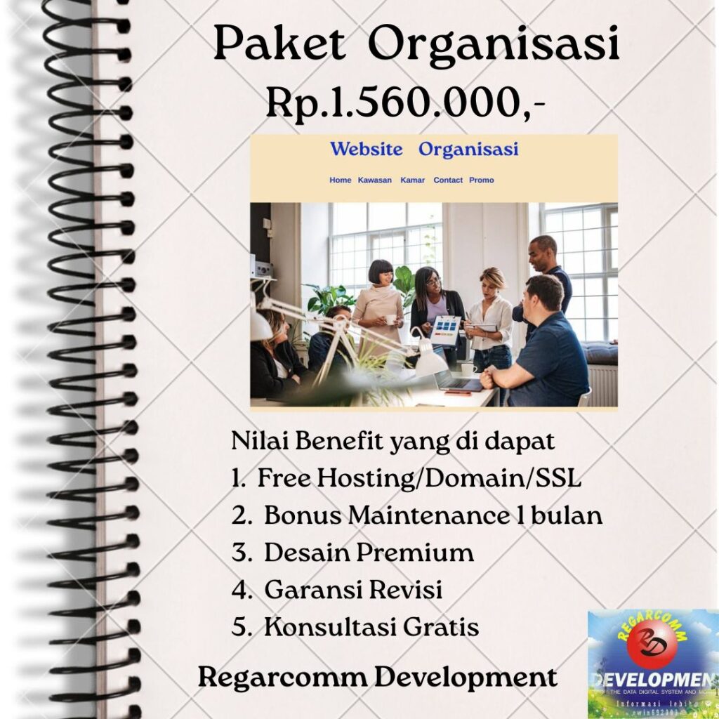 Paket Organisasi merupakan Paket website dengan domain com dan id. Tepat untuk Organisasi yang selalu beraktivitas dan berbagi info ke selamanya. Harganya Rp.1.560.000